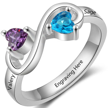 Sold out - Personalized Mothers Infinity Ring 2 Heart Birthstones 2 Engraved Names