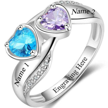 - Personalized Mothers Ring 2 Heart Birthstones Lovely Hearts 2 Names