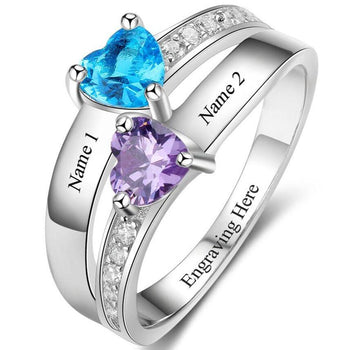 Sold out - Personalized 2 Birthstone Mother's Ring Elegant Hearts 2 Engraved Names