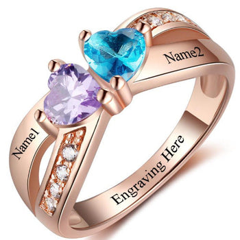 Sold out - Custom 2 Heart Stones Name Ring - 2 Engraved Names Mother's Ring