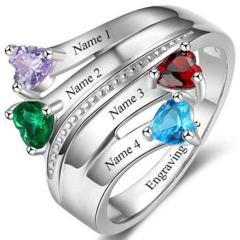 Sold out - 4 Birthstone Mother's Ring Passing Hearts Ribbon 4 Names