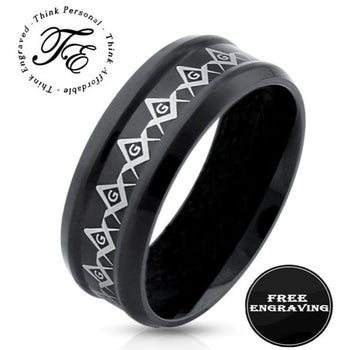 - Personalized Black Grooved Masonic Compass Ring Engraved Free Mason
