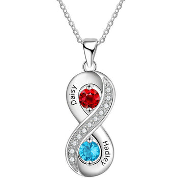 - Personalized 2 Stone Mother's Infinity Necklace 2 Engraved Names