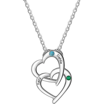 Sold out - Personalized 2 Birthstone Mother's Necklace Double Heart 2 Engraved Names