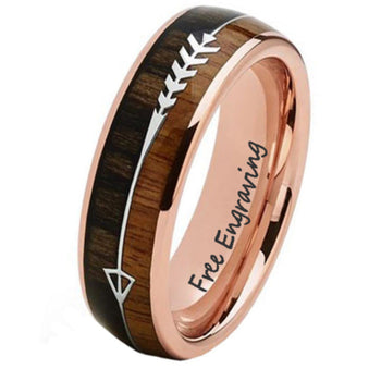 - Mens Personalized Rose Gold Wedding Ring African Wood and Koa Wood