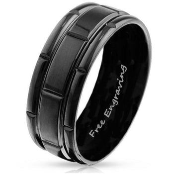 Sold out - Custom Engraved Men's Black Wedding Ring - Black Square Grooves Stainless Steel