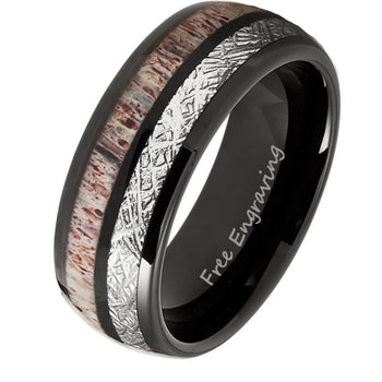 Sold out - Personalized Men's Meteor and Antler Black Tungsten Promise Ring - Handwriting Ring