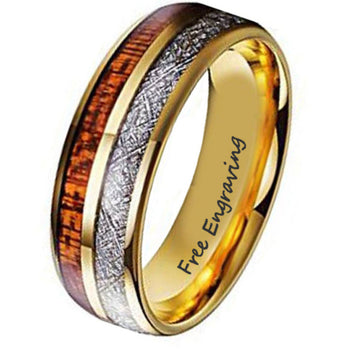 - Personalized Men's Gold Tungsten Promise Ring Wood and Meteor