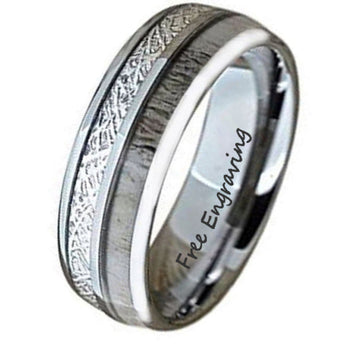 Sold out - Men's Engraved Deer Antler and Meteor Tungsten Promise Ring - Deer Bone Ring