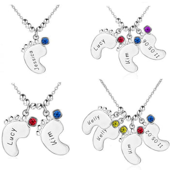- Personalized Baby Feet Mother's Necklace 1, 2, 3 or 4 Birthstones