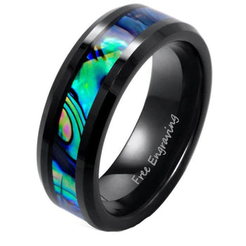 - Personalized Men's Tungsten Abalone Wedding Ring - Engraved Handwriting Ring