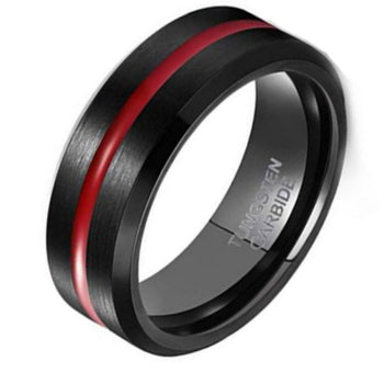 - Personalized Men's Wedding Band With Thin Red Line Groove