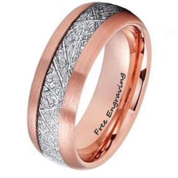 Sold out - Personalized Men's Tungsten Wedding Ring - Meteorite Inlay 14k Rose Gold Ip