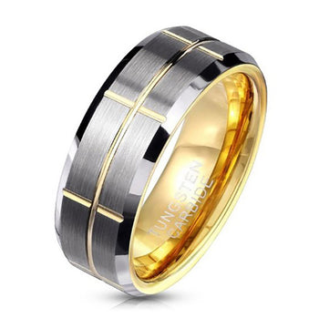 Sold out - Personalized Men's Wedding Band - Grooved 14k Gold Over Real Tungsten