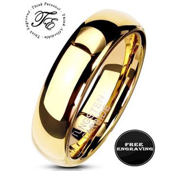 - Personalized Women's Promise Ring - Dome Design 14k Gold Over Real Tungsten