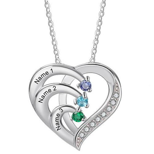 3 Birthstone Heart Name Necklace - Birthstone Heart Mother's Necklace