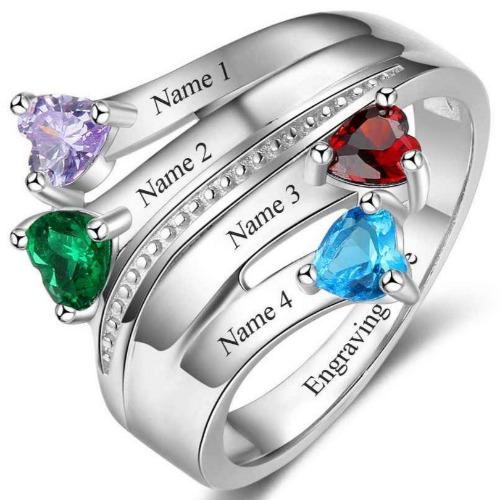 4 Birthstone Mother's Ring Passing Hearts Ribbon 4 Names
