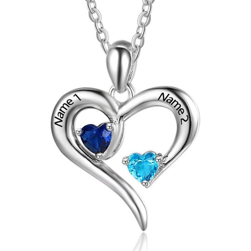 Custom 2 Stone Heart Mother's Necklace or Couple's Necklace 2 Engraved Names
