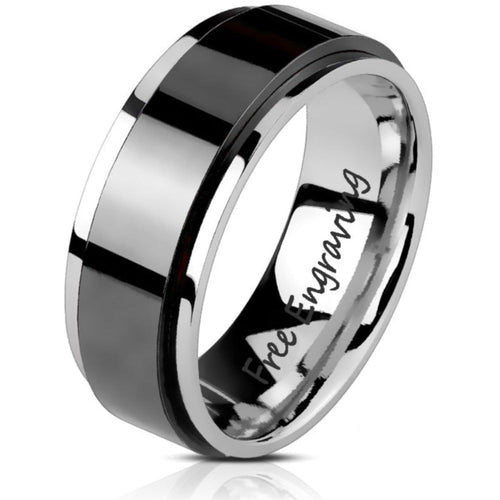 Personalized Men's Wedding Band - Black and Silver Fidget Spinner Ring